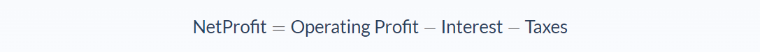 Net profit is the profit that is left over after all the expenses which includes taxes and interest was paid. The net profit is calculated by subtracting the interest and taxes from the operating profit.