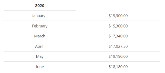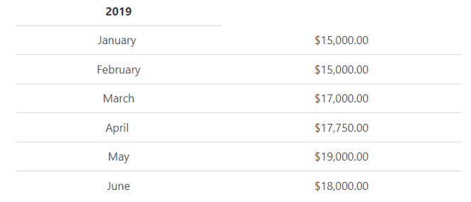 Example: ABS Pvt Limited owns a gym and has decided to use its previous year’s sale amount to prepare a cash flow budget for the next six months. The sales information from the first six months from the previous year is as follows: