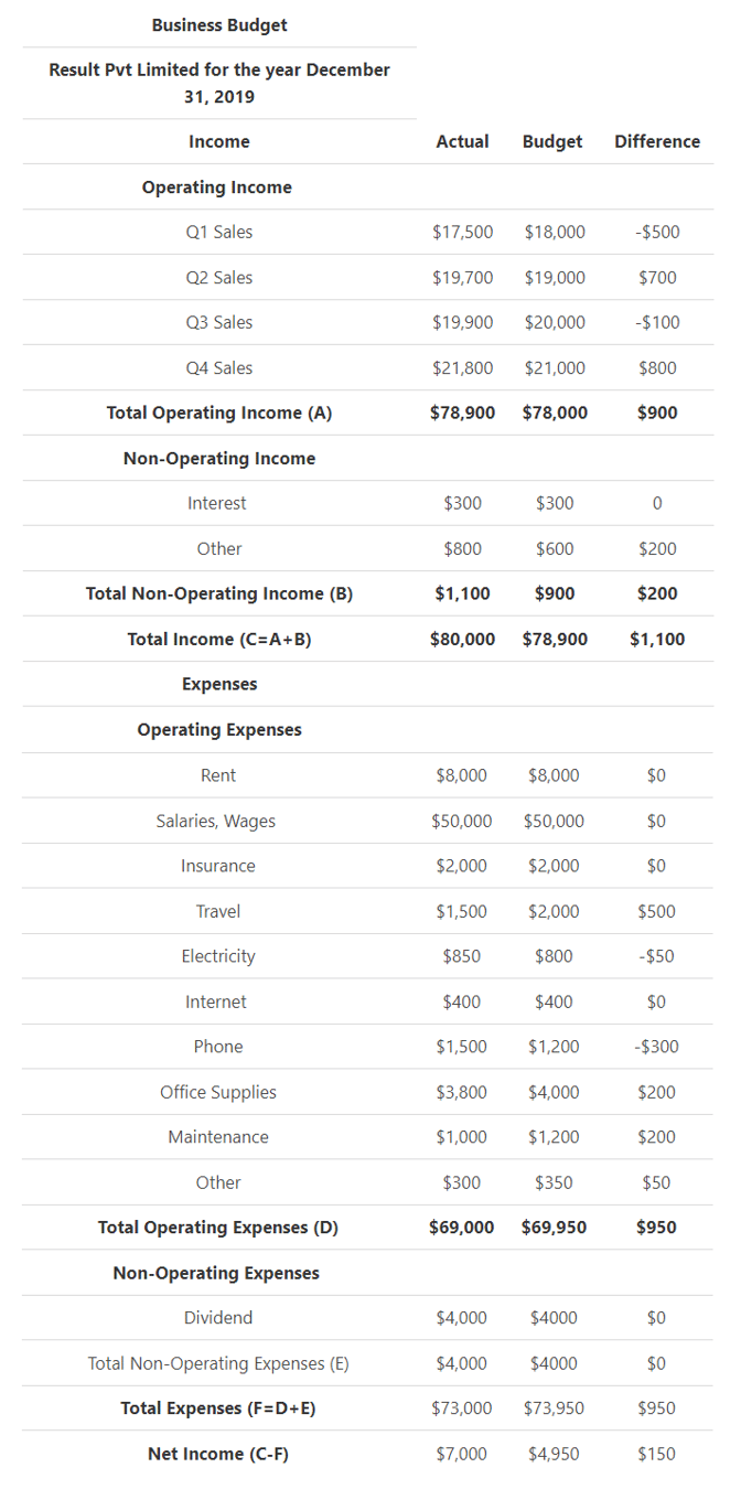 - This allows the business to see how accurate their budget is and gives them enough room for timely adjustments