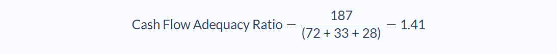 Let’s calculate the cash flow adequacy ratio using these values in the formula (in millions):