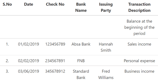 - Transaction Description – this field is critical because it shows the nature of the transactions that are happening. It could be a sale, expense or another business or personal income or expense.
