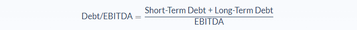 Debt/EBITDA = Short-Term Debt + Long-Term Debt / EBITDA