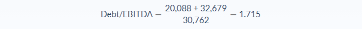 The debt to EBITDA ratio is simply the total amount of short-term and long-term debts divided by EBITDA.