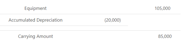 The carrying amount is the amount at which an asset is recognized in the statement of financial position after deducting any accumulated depreciation and accumulated impairment loss.