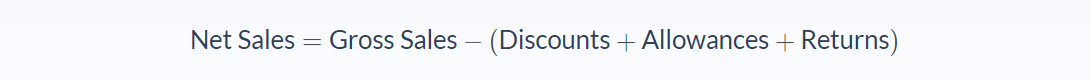 In sales, gross and net sales are given by the following formula: