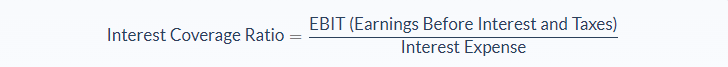 Interest Coverage Ratio = EBIT (Earnings Before Interest and Taxes) / Interest Expense
