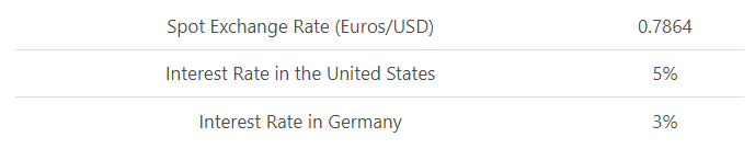 Situation 2: Say, the investor decides to convert his $1000 into Euros and invest the money in a 3% interest-bearing instrument in Germany, and exchange the sum earned back into US Dollars after one year. Converting $1000 in the spot exchange rate of 0.7864 would give him 786.4 Euros (1000*0.7864). When he invests this 786.4 Euros in a 3% interest-bearing instrument in Germany for one year, he will receive the same 809.992 Euros [786.4 + (786.4*3%)] after one year.