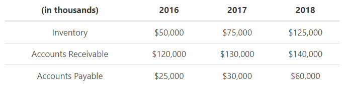 Now let’s break it down and identify the values of different variables in the problem for each year. To calculate the net working capital, you would add the accounts receivable and the inventory, then subtract the accounts payable.