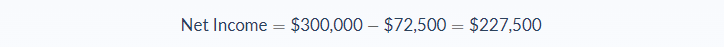 An example of net income would be a business that has generated $300,000 in revenue but has paid $72,500 in taxes, expenses, and costs. This would leave a net income of $227,500.