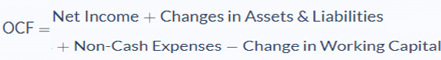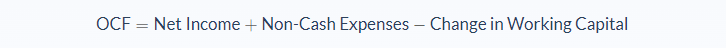 Operating Cash Flow = Net Income + Non-Cash Expenses - Change in Working Capital