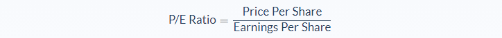 The price to earnings (P/E) ratio is calculated using the following formula: