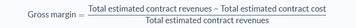 Calculate the total estimated gross margin (if needed). The gross margin is the net revenue minus the cost of goods. We calculate this by subtracting the total estimated contract costs from the total estimated contract revenues for the project.