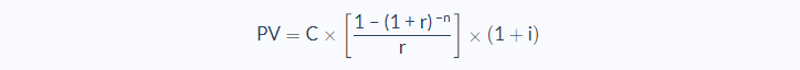 PV = C × [1−(1+r)−n] / r × (1+i)
