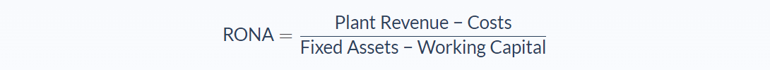 The RONA formula uses a mixture of fixed assets and net working capital. You may notice that we don’t include any liabilities as part of the net assets. Any variable that has the word “net” in front of it usually doesn’t include any liabilities or expenses. This is the same with net assets.