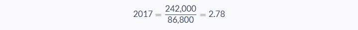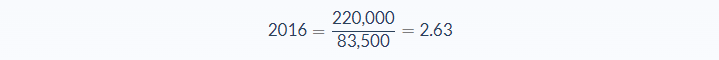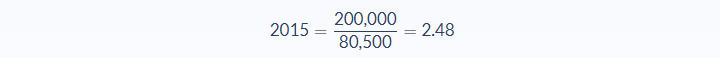 We can now use the formula to find the sales to equity ratio for each year: