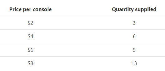 Example: The following table shows the number of hypothetical products XYZ limited supplied during a week, at different prices.