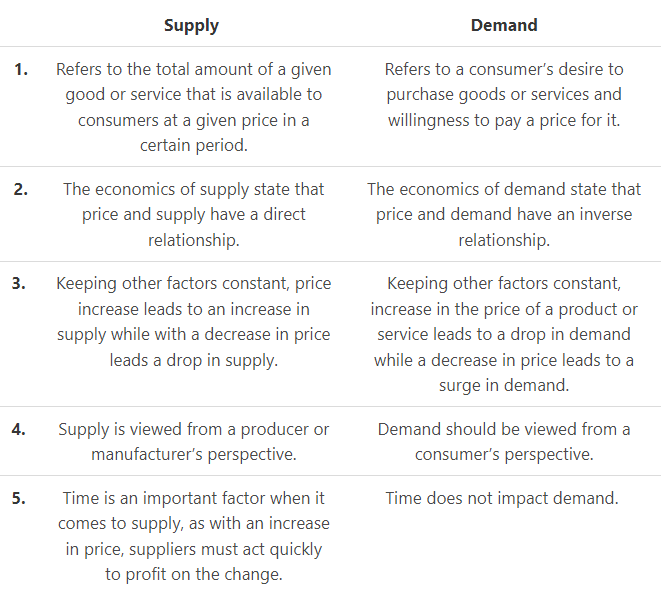 Difference between Supply and Demand