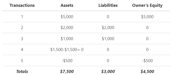 The double-entry accounting system is designed to make sure that assets will always be equal to liabilities + owner’s equity. The totals above show that John has total assets worth $7,500, while his liabilities and equity are $3,000 & $4,500, respectively.
