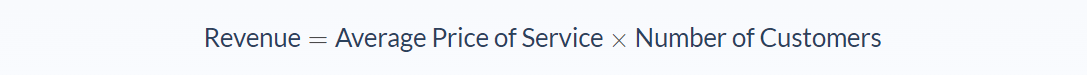 The company will first need to calculate the number of customers that availed of the service during the period in question. Then the average price of the service will need to be calculated. These two values are then multiplied by each other to get the revenue earned from providing a service.