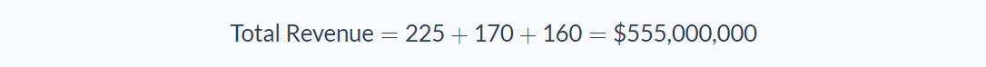 Example 2: A computer company manufactures and sells computers in three different markets. In 2019 they sold 150,000 computers in market 1 at an average price of $1,500 each. In market 2, they sold 100,000 computers at an average price of $1,700. In market 3, they sold 80,000 computers at an average rate of $2,000.
