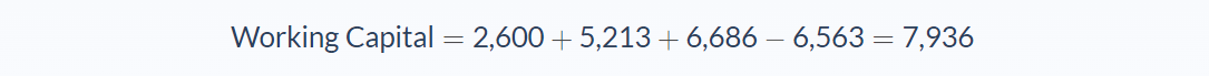 We have the total debt number, so let’s first get working capital (numbers in thousands to simplify things):